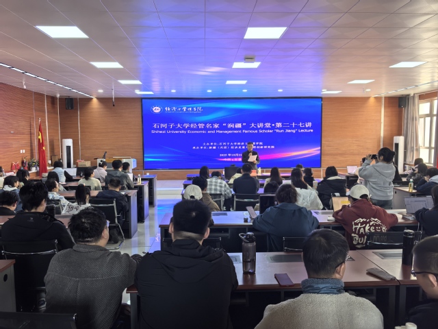 10月11日,石河子大学经济与管理学院在东经楼438教室举办了经管名家“润疆”大讲堂第27期——“数字经济发展、资本跨区域非对称流动与异地分类投资”专题学术讲座。本次讲座由经济与管理学院副院长张杰主持,特邀对外经济贸易大学吕越教授担任主讲嘉宾,学院180余名师生参与学习交流。