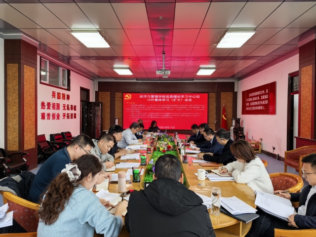 10月13日,经济与管理学院党委理论学习中心组在东经301会议室举行10月份集体学习(扩大)会议,围绕“深入学习宣传贯彻习近平总书记率中央代表团出席自治区成立70周年庆祝活动期间的重要讲话重要指示精神;服务新疆经济社会高质量发展”主题进行专题学习和研讨。院党委书记陈飞主持会议。