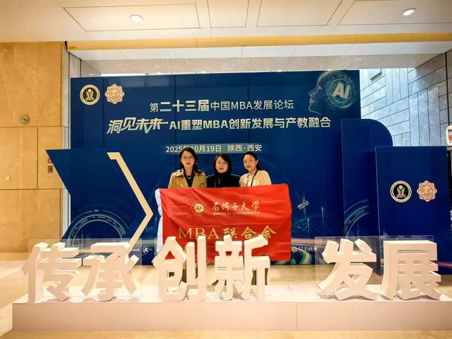 10月19日,第二十三届中国MBA发展论坛在陕西西安举行。本届论坛由西安电子科技大学主办,主题为“洞见未来:AI重塑MBA创新发展与产教融合”。此次论坛汇聚了来自全国150余所MBA培养院校的专家学者、师生代表及企业界人士。石河子大学经济与管理学院专业学位教育中心办公室主任吕雪晶老师、王娜老师和MBA执行主任王蕾老师参加本次论坛。