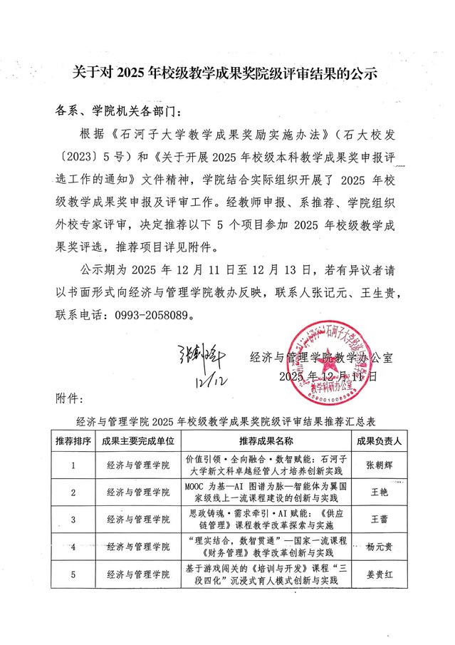 时间:2025-12-11 来源:经济与管理学院 作者:教学办公室
