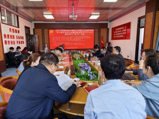 3月12日下午,经济与管理学院在东经301会议室召开树立和践行正确政绩观学习教育动员大会暨党委理论学习中心组集体学习(扩大)会议。此次会议旨在深入学习贯彻习近平总书记关于树立和践行正确政绩观学习教育的重要讲话和重要指示精神,全面、扎实地启动学院学习教育工作,为“十五五”规划开好局、起好步凝聚广泛的思想共识,筑牢坚实的作风根基。会议由院党委书记陈飞主持,学院党委委员、各系及机关各部门负责人、各系教工党支部书记参加会议。